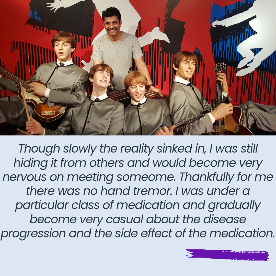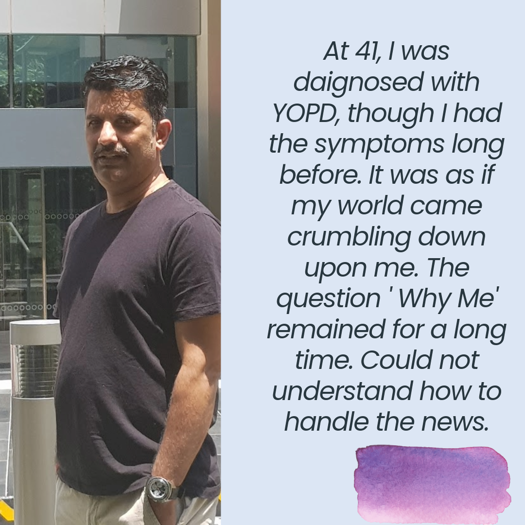 I was diagnosed with Parkinson’s Disease (YOPD) when I was 41, though I knew I had the symptoms since a few years prior.